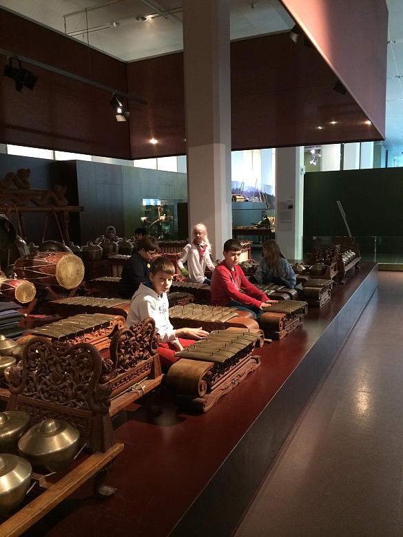 Heute haben wir die Klasse erneut in zwei Gruppen geteilt. Das Gamelan wurde wieder besetzt und ein kleines Musikstück einstudiert. Das ganze Museum wurde durch unser Lied beschallt. Das klang richtig gut! Die andere Gruppe hat eine kleine Rallye durch das Überseemuseum gemacht, bei der viele Fragen beantwortet werde mussten und das Museum noch besser kennen gelernt wurde.