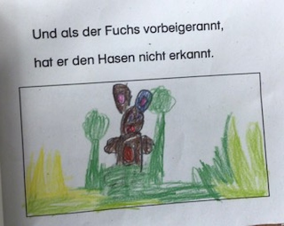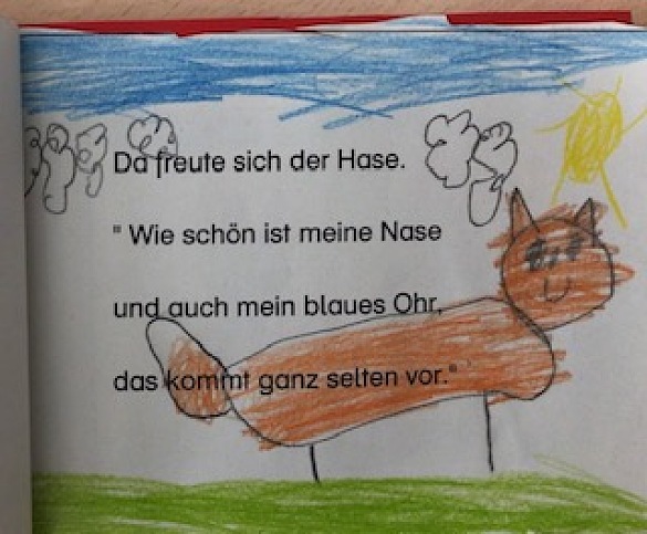 In den ersten Klassen drehte sich vor den Ferien alles um das Kinderbuch "Der Hase mit der roten Nase" von Helme Heine.