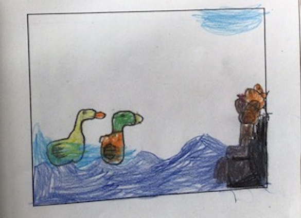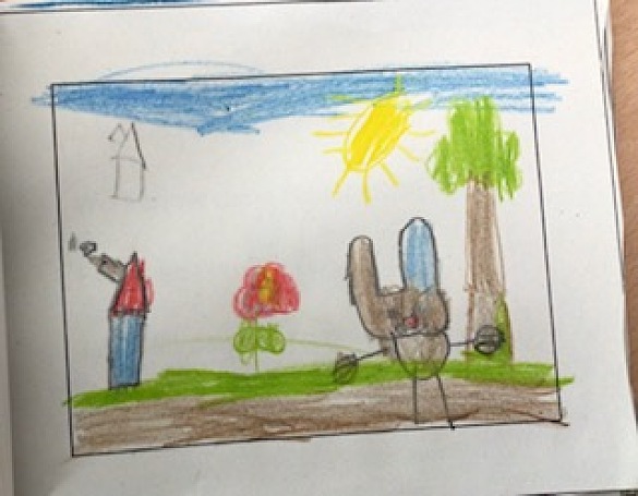 Wir haben uns ein eigenes Bilderbuch gebastelt und mit Stabfiguren Theater gespielt. Das hat uns soviel Spaß gemacht, dass es im Kindertreff für alle Kinder und Erwachsenen eine extra Vorstellung gab.