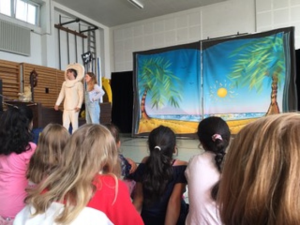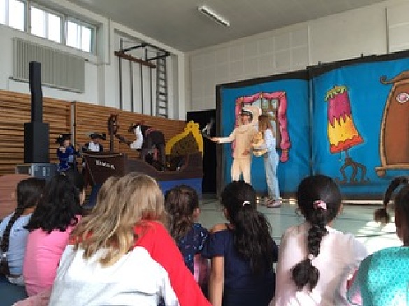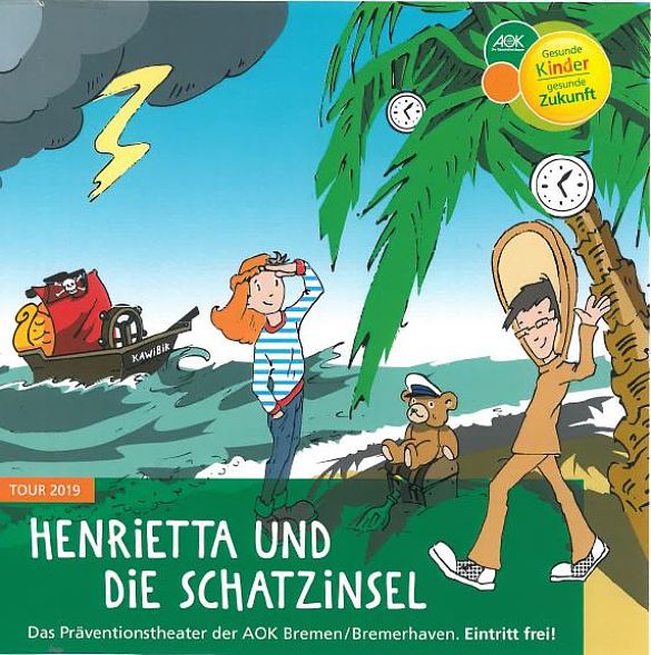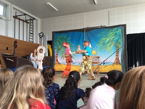 Am 20. August haben wir mit der ganzen Schule das Präventionstheater "Henrietta und die Schatzinsel" der AOK Bremen/Bremerhaven in unserer Turnhalle gesehen.