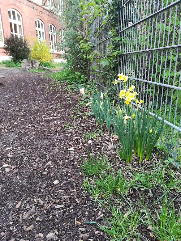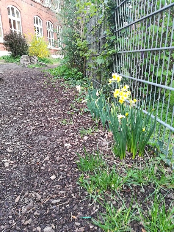Bereits im November ist bei uns in der Schule ein Paket mit 600 Blumenzwiebeln angekommen, die wir in den letzten Wochen auf und um den Schulhof eingepflanzt haben.